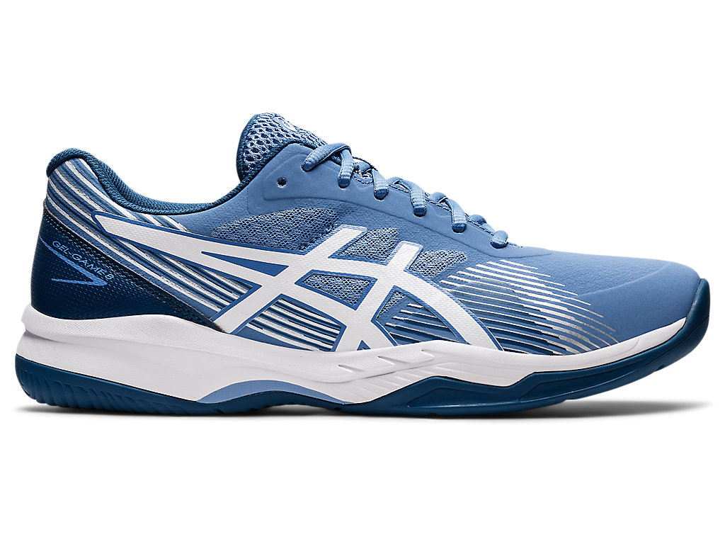 Both durable and comfortable, the GEL-GAME™ 8 tennis shoe is versatile for the recreational athlete who’s playing several times per week. Preserving its excellent support properties, our focus this season was to improve the shoe's ventilation and flexibility. Featuring an open mesh design on the upper to improve airflow and keep feet cool, this shoe is complemented with synthetic leather overlays and a PU (polyurethane) film that offers improved stability when making abrupt transitions. The TRUSSTIC™ technology in the midsole generates better stability on the court. At the same time, the new tooling combines an EVA midsole foam with GEL® technology cushioning in the forefoot to increase shock absorption. Additionally, the improved outsole offers better flexibility and a more durable design. The GEL-GAME™ 8 tennis shoe is an excellent choice for beginner to mid-level players seeking a cushioned and stable tennis shoe.