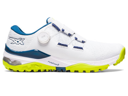 The GEL-KAYANO® ACE BOA golf shoe makes lacing up for the links a cinch. This style offers good stability with improved traction for the fairway and putting green.Equipped with a BOA™ lacing system, this shoe offers lightweight support, padding, and a more personalized fit. It also features an external heel counter that reinforces stability, so you can stay focused on your swing.The midsole is layered with FLYTEFOAM™ PROPEL technology to create lightweight cushioning. Additionally, the GEL™ technology in the heel provides good shock absorption.